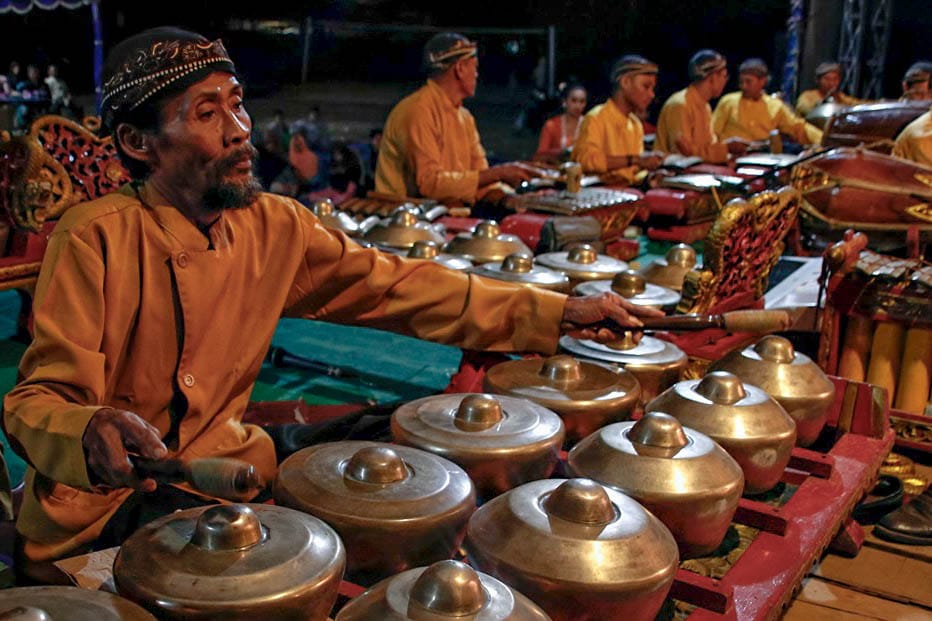 Gamelan adalah ansambel musik tradisional yang berasal dari Jawa dan Bali. Gamelan terdiri dari berbagai macam alat musik perkusi, seperti gong, saron, bonang, dan kendang. Gamelan tidak hanya dimainkan sebagai iringan tari atau wayang, tetapi juga sebagai bentuk seni pertunjukan yang mandiri. Dalam perkembangannya, gamelan seringkali berkolaborasi dengan seni pertunjukan lain, seperti tari, teater, atau musik kontemporer.